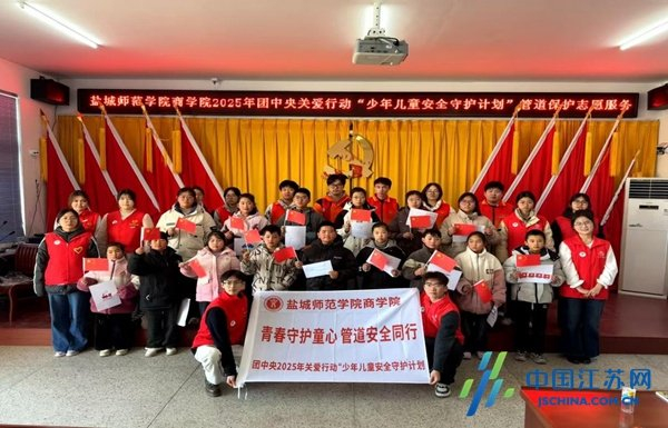 中国江苏网1月15日盐城讯 为深入贯彻落实团中央“少年儿童安全守护计划”工作要求,持续深化对青少年的思想引领与价值观塑造,近日,盐城师范学院商学院团委联合响水县民政局、陈家港未成年人保护站及心途公益服务中心,在陈家港镇下辛村党群服务中心共同开展2025年关爱行动“少年儿童安全守护计划”爱国主义主题教育课程。本次活动以“祖国旗帜在我心”为主题,通过生动鲜活的旗帜教育与红色文化体验,引导辖区少年儿童增强国家认同、培育爱国情感,在潜移默化中筑牢信仰根基。