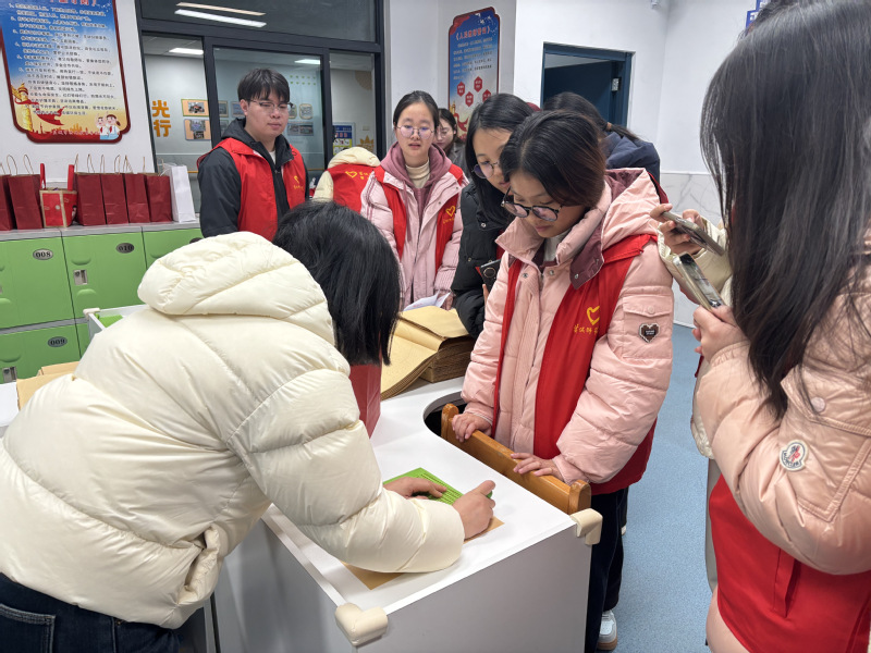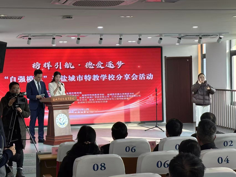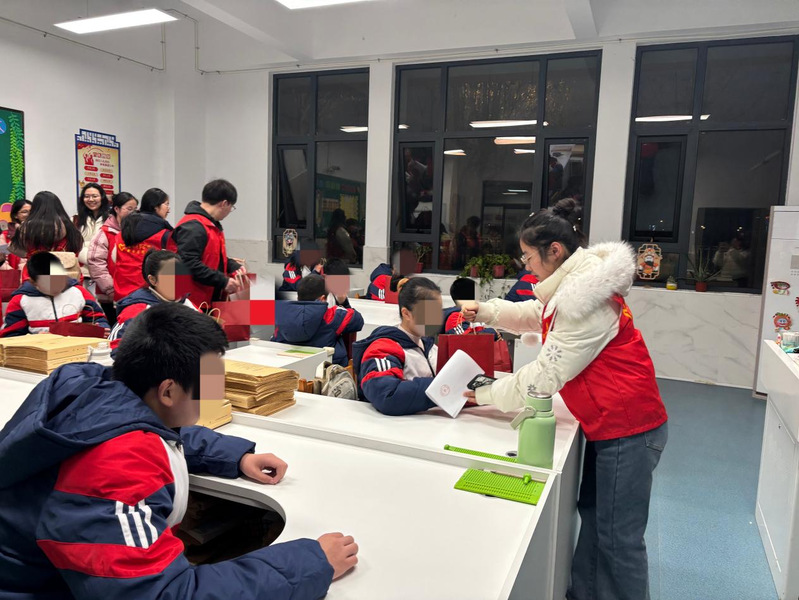 在“榜样引航,德爱逐梦”主题分享会上,学院师生与盐城市特殊教育学校学生共同聆听了四位自强模范在逆境中奋发向上、勇敢追梦的感人事迹。他们身上展现的坚韧品格与昂扬精神,深深感染了在场每一位师生,为大家上了一堂生动而深刻的思政课。学院志愿者还走进班级开展暖心交流,向孩子们送上了精心准备的“爱心礼包”,其中包含暖贴、文具和健康零食等实用物品。孩子们真挚的笑容与一声声感谢,让志愿者深刻体会到奉献的意义与温暖。盐城市特殊教育学校老师还现场演示了盲文教具的使用方法,帮助志愿者了解视障学生的学习方式,进一步增强了大家扶残助残的意识和实践能力。