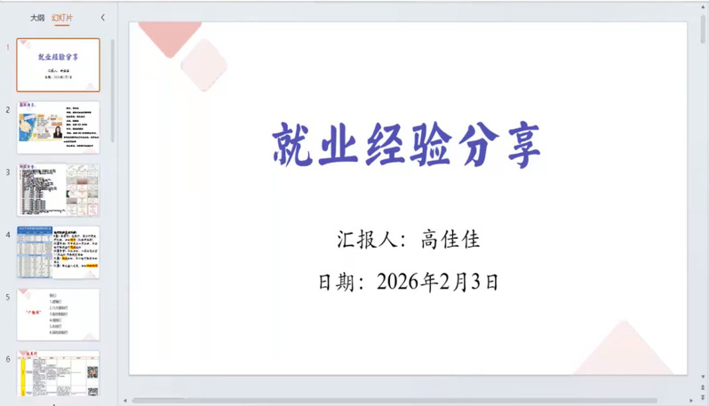 交流环节中,三位2022级就业学生代表线上分享实战经验。高佳佳同学详解银行秋招全流程与跨专业求职策略;陈烨曦同学聚焦教师编制备考要点与上岸心得;胡欣然同学结合生物技术研发岗位,分享科研实习与职业规划融合路径。三位已就业同学的分享内容翔实、建议具体,引发毕业生热烈互动与深入思考。