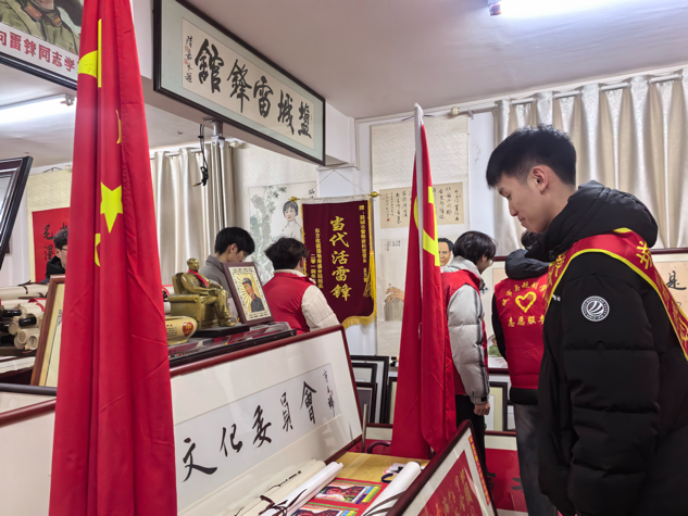 步入雷锋文献馆,志愿者们依次参观,静心瞻仰。展板上,“雷锋是时代的楷模”“雷锋精神是永恒的”等字样庄重醒目。“当代活雷锋”的感人事迹透过图文静静陈列,无声打动人心。大家驻足凝望珍贵照片、泛黄日记,从“把有限的生命投入到无限的为人民服务之中去”的誓言中汲取精神滋养。馆内一侧,“志愿服务是社会文明进步的重要标志”的红色横幅格外鲜明,志愿者们在凝望中,深刻体悟新时代学雷锋志愿服务的时代重量。