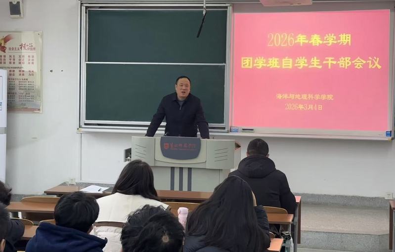 近日,海洋与地理科学学院召开2026年春学期学生干部培训会议。学院党委副书记吴恒仲、全体辅导员及学生骨干参会。