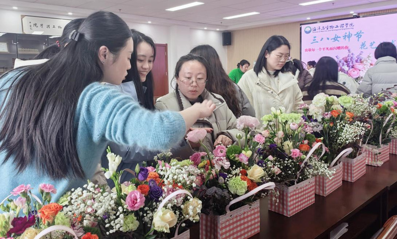3月7日,文学院以“春润盐师桃李情 暖巾帼芳华”为主题开展庆祝活动,女教师代表分享教学感悟与成长心得,真挚的话语引发强烈共鸣。并为女教职工送上鲜花,将节日祝福与关怀送到每位老师身边,现场还进行了手工体验环节,沉浸式创作,节日幸福感拉满。海洋与生物工程学院举办“花香悦生活 巾帼绽芳华”花艺插花活动,女教师在专业指导下创作插花作品,相互交流插花心得,分享生活感悟,感受艺术与生活的美好。商学院、数字经济学院组织女教师赴淮安周恩来纪念馆、周恩来故居开展“红色寻访悟初心 巾帼风韵映芳华”主题教育活动,全面了解周总理为党和人民事业鞠躬尽瘁、无私奉献的光辉一生,深刻感悟“为中华之崛起而读书”的远大志向与崇高精神风范,在沉浸式学习中接受党性洗礼。