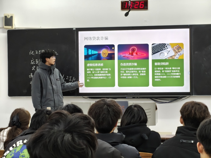 学院依托反诈志愿宣讲队,构建“线下宣讲+线上推送”全覆盖宣传格局。宣讲队员走进“一站式”学生社区,通过案例讲解、互动答疑、发放宣传手册等形式,向同学们普及刷单返利、冒充客服、校园贷、虚假兼职等高发诈骗类型,拆解诈骗套路,传授防范技巧,引导大家提高警惕、守住“钱袋子”。同时,宣讲队深入各班级教室,开展反诈主题班会,结合真实案例以案释法,提醒学生不轻信、不透露、不转账,遇到可疑情况及时核实,让反诈教育入脑入心。