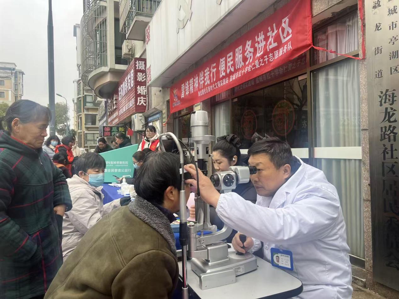 县前路社区、八十间社区联合盐城师范学院体育与健康学院、盐城市曙光眼科医院,开展“弘扬雷锋精神 守护光明初心”眼健康公益活动。志愿者们分工协作,有序开展现场引导、信息登记、帮扶服务等工作,热情配合医护人员推进眼部检查流程,用细致服务为居民眼健康保驾护航。盐师青年志愿者在实践中增强了社会责任感,展现出朝气蓬勃、乐于奉献的青春风貌,让雷锋精神在志愿行动中薪火相传。