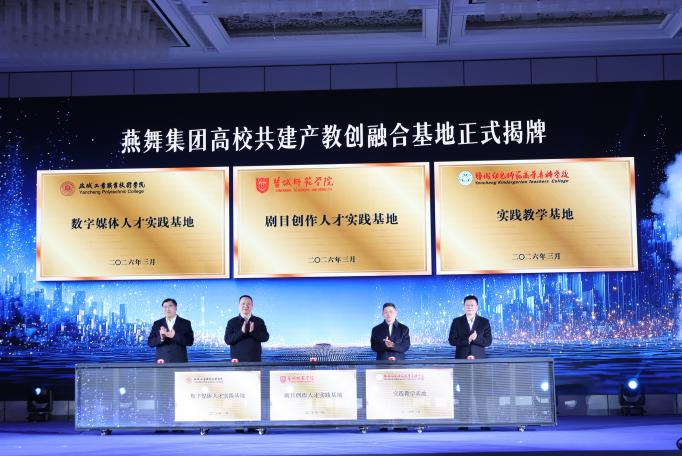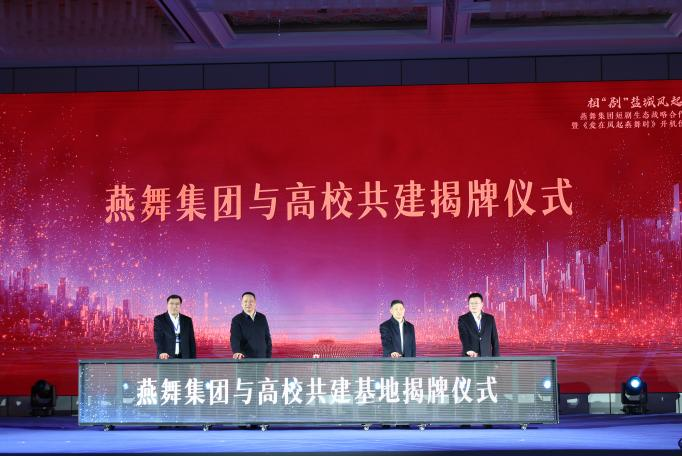 本次活动由中共盐城市委宣传部、盐城市文化广电和旅游局主办,燕舞集团有限公司主办,盐城市演艺集团、江苏燕舞影视传媒等单位承办。活动现场,我校与燕舞集团正式达成产教创融合合作,共建产教创融合基地。张宏如与燕舞集团主要领导共同为我校“剧目创作人才实践基地”揭牌。