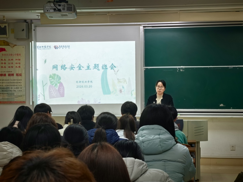 3月20日,创新创业学院组织召开网络安全主题班会,重点部署网络言行规范、数据安全保护等关键内容。学院党总支副书记施桂红主持班会,全体同学参会。