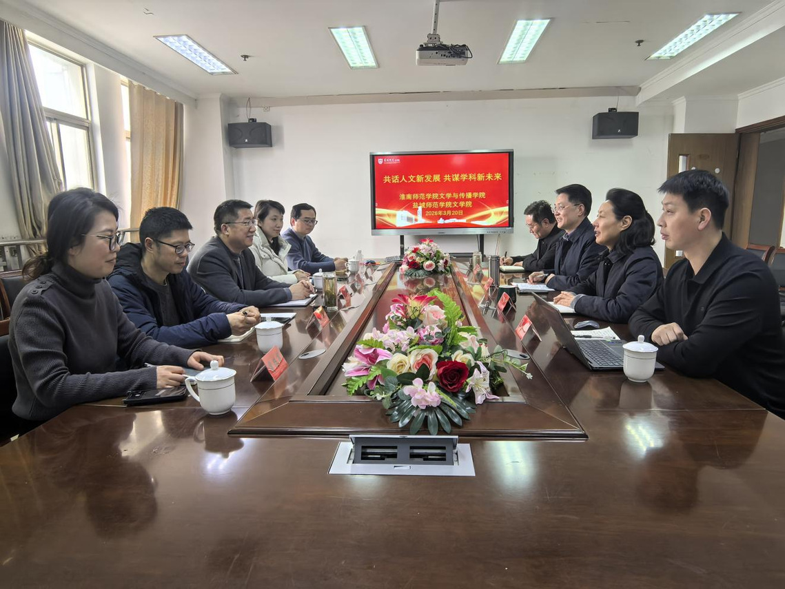 3月20日,淮南师范学院文学与传播学院院长孙宏新、副院长田宏宇等一行5人莅临文学院开展专题考察与交流研讨。文学院党委书记吉照远,院长李尧,副院长陈国华参加交流活动。