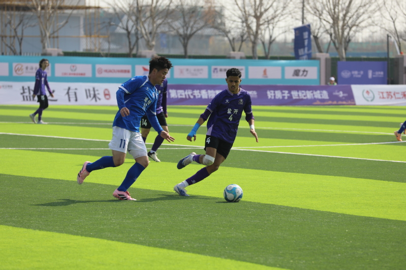 在3月21日盐开队主场对阵盐城城投队的小组赛第三轮中,盐开队以8:1的比分大获全胜。比赛中,我校师生王诗栋、孙奕鸣、祝梓轩、谢丰远和留学生阿里、校友葛亚军首发登场,迅速进入状态。比赛第11分钟,来自黄海国际学院的摩洛哥籍留学生阿里凭借敏锐跑位率先破门,点燃了全场激情,最终他以两粒进球的表现征服了观众。赛后阿里表示,来到盐师是他人生最正确的选择之一,这里让他感受到了家的温暖,他将努力学习并坚持足球爱好。此外,我校体育与健康学院在校生、28号球员孙奕鸣和我校2010届校友、3号球员郑毅分别在上下半场贡献了一粒进球,为盐开队最后一场小组赛划上圆满的句号。同时,我校2009届校友、步凤小学体育教师、盐开队队长葛亚军小组赛三场均首发登场,在球队中发挥着关键核心作用,带领球队奋勇向前。虽然最终盐开队在小组赛中两负一胜无缘八强,但全队表现出的永不言败的精神令人动容。