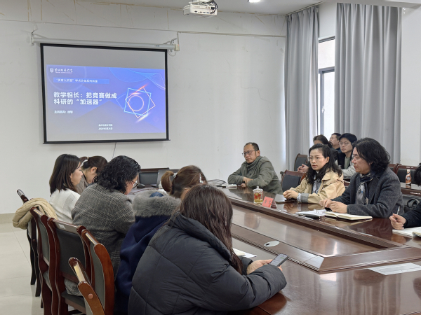 3月25日下午,美术与设计学院“美育大讲堂”学术沙龙在学院会议室举办。本次讲座特邀西安邮电大学数字艺术学院党委书记、全国高校就业创业指导委员会委员唐黎教授带来题为《教学相长——把竞赛指导做成科研的“加速器”》的专题分享,深度探讨了学科竞赛与科学研究相互赋能、协同育人的创新路径。美术与设计学院院长王忠林教授担任学术主持,学院党委副书记王寅、副院长沈冠东及全体教师参加本次沙龙。