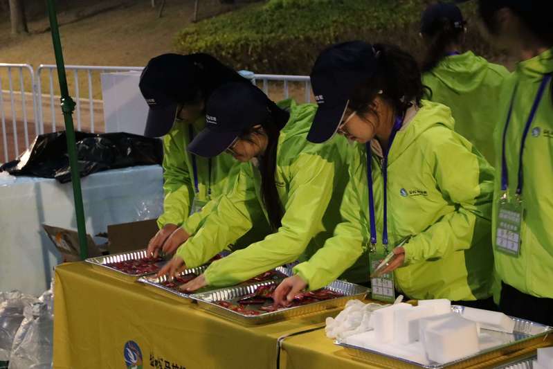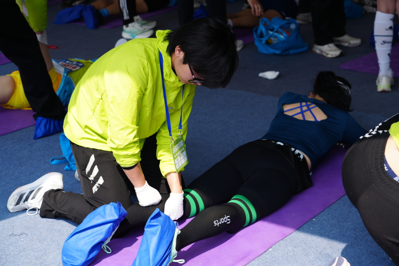 围绕赛事保障全流程,我校大学生志愿者深度参与各环节工作。赛前高效完成物资分拣与摆放,赛中承担补给递送、秩序维护、终点拉伸及兴奋剂检测等任务,赛后迅速完成收尾清理工作,以严谨态度和细致服务贯穿始终。从凌晨集结到正午收官,他们以扎实的业务能力赢得参赛选手和赛事组委会的一致好评。