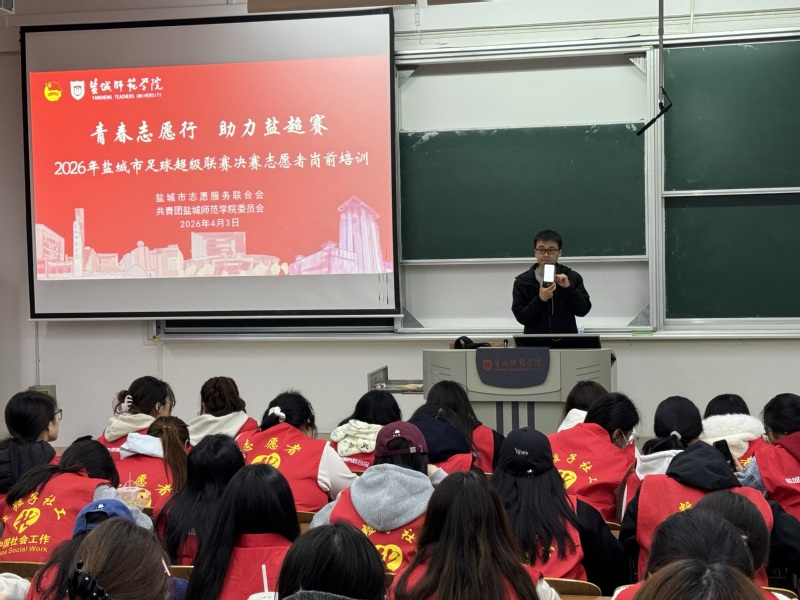 据悉,本届盐城市足球超级联赛以“盐城力量 绿茵争锋”为主题,汇聚全市16支队伍、463名球员,是盐城本土最高水平、最具影响力的全民足球盛会。我校作为本次盐超联赛决赛唯一高校志愿者团队,始终坚持以服务地方经济社会发展为己任,积极搭建实践育人平台。