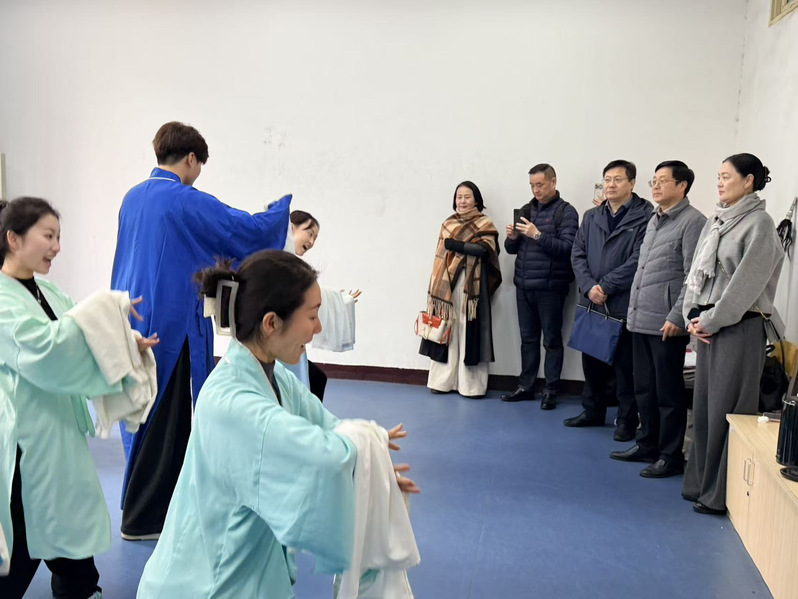 在安庆师范大学,该校党委常委、副校长吴琼代表学校热烈欢迎我校调研组一行。黄梅戏艺术学院党总支书记汪超主持座谈会。会上,汪超详细介绍了该学院在黄梅戏传承创新、专业建设、人才培养模式改革及产教融合等方面的实践成果与发展规划,双方对戏曲专业建设、人才培养模式、戏曲数字化保护等内容深入研讨,学习调研期间,调研组实地观摩戏曲教学现场、成果展厅与戏曲实验室等。
